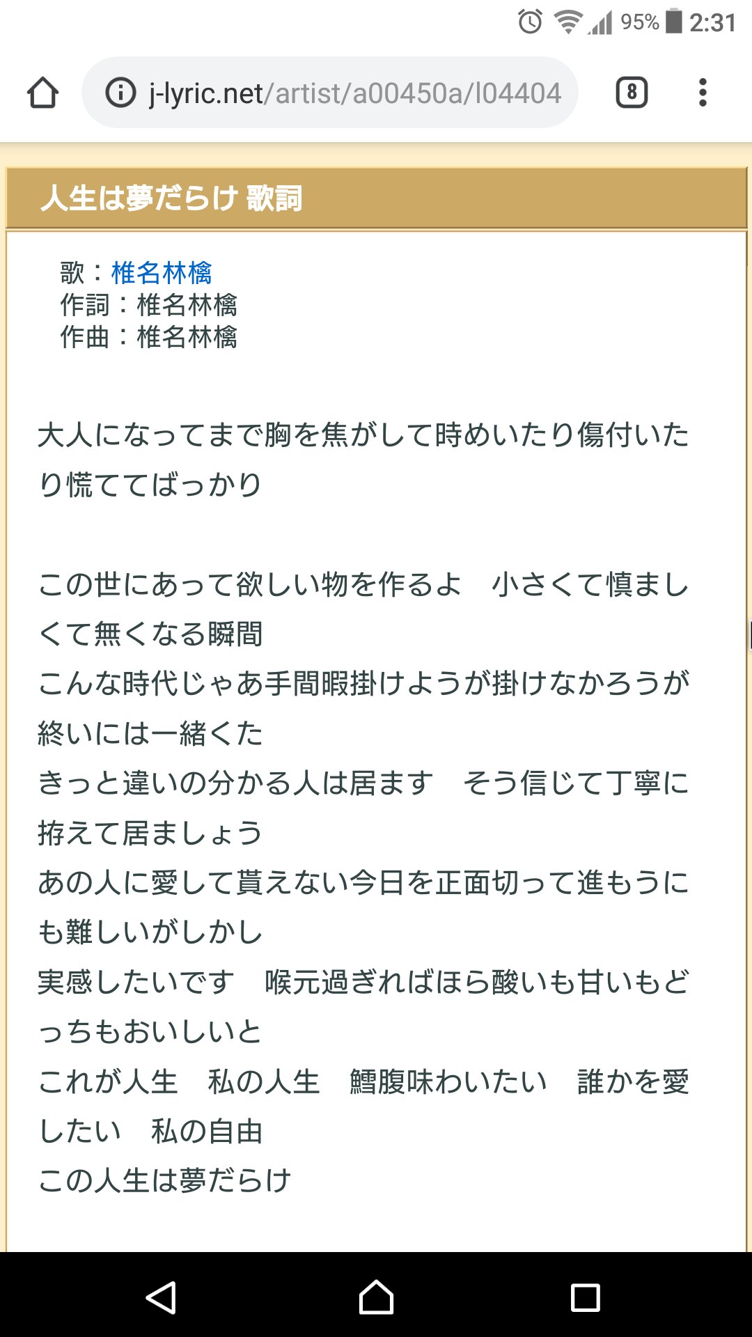 Yawl Twitterissa 椎名林檎 人生は夢だらけ 歌詞 T Co Kentwozhqg Hnrちゃんの人生のテーマ曲人生は 夢だらけの歌詞です